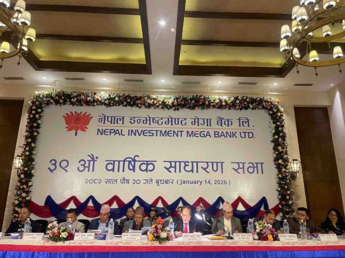 काठमाडौं, ३० पौष, २०८२ । नेपाल इन्भेष्टमेण्ट मेगा बैंक लिमिटेडले आफ्नो ३९औं वार्षिक साधारण सभा सफलतापूर्वक सम्पन्न गरेको छ ।